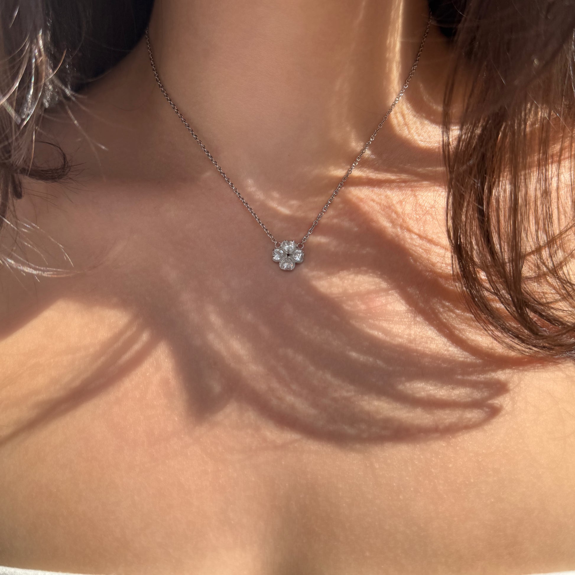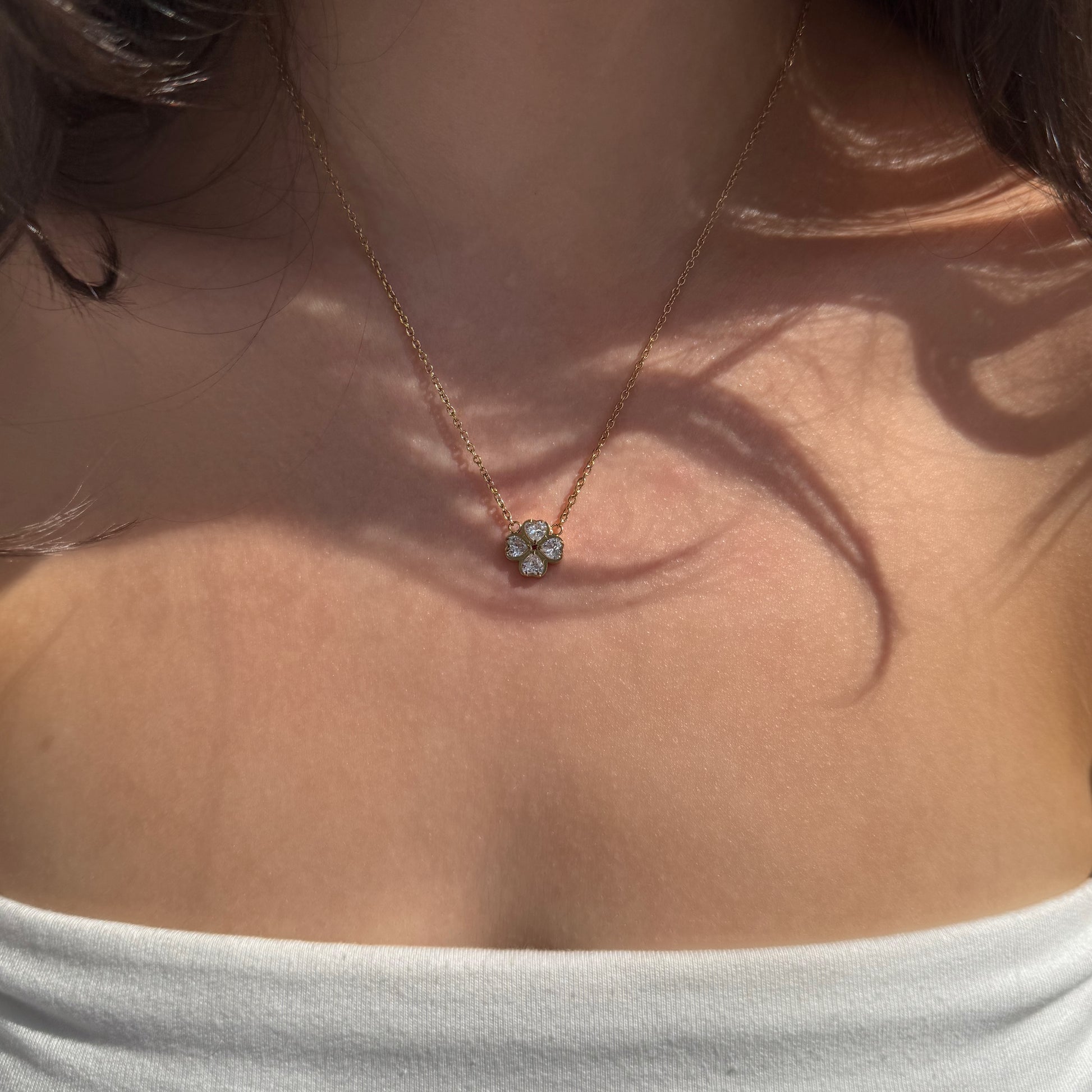 Elevate your everyday look with effortless elegance through this sleek collarbone chain necklace. Featuring a minimalist yet luxurious design, its centerpiece is a clover leaf pendant adorned with a brilliant zircon stones that catch the light with just the right sparkle. Crafted from high-quality materials, this necklace offers strength and durability while resisting tarnish to maintain a lasting shine. Its versatile style complements everything from casual wear and office attire to chic evening outfits, making it a perfect addition to your jewelry collection.