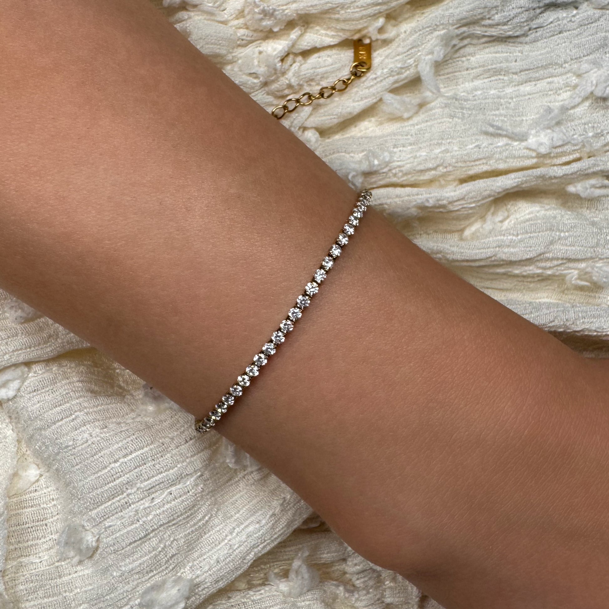 Elevate your everyday style with our sleek Tennis Zircon Chain Bracelet, crafted to blend timeless elegance with modern durability. Featuring a dazzling row of high-quality zircon stones, each bracelet catches the light beautifully, adding a subtle yet sophisticated sparkle to your look. Designed for comfort and made from stainless steel, it’s resistant to tarnish and perfect for daily wear. Whether you’re dressing up for a special occasion or adding a refined touch to your casual outfit.